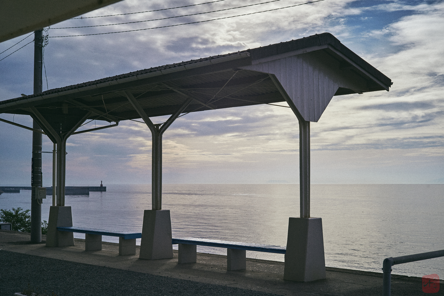 시모나다역은 국도 하나를 사이에 두고 세토내해를 볼 수 있는 역입니다