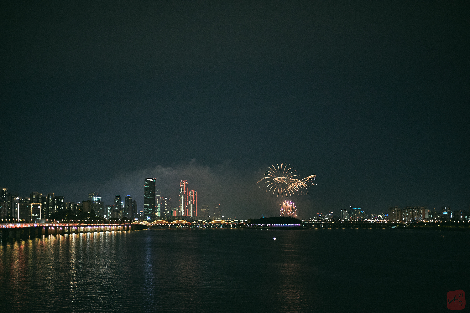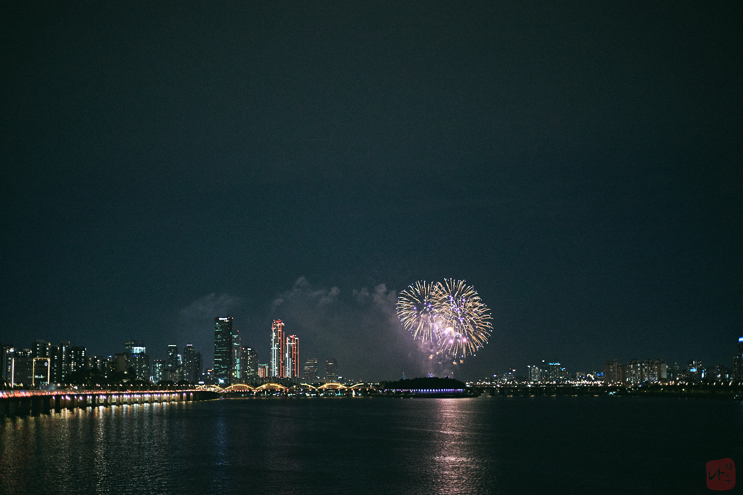 불꽃놀이를 위해 기다리던 중 찍은 노을