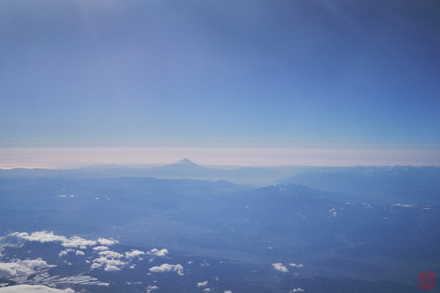 나리타공항을 향해 날아가던 중 창 너머로 찍은 사진입니다