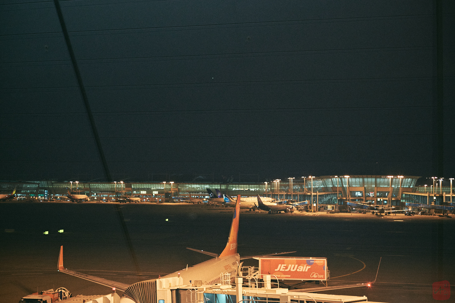 탑승구로 향하던 중 바라본 하늘은 아직 깜깜했습니다