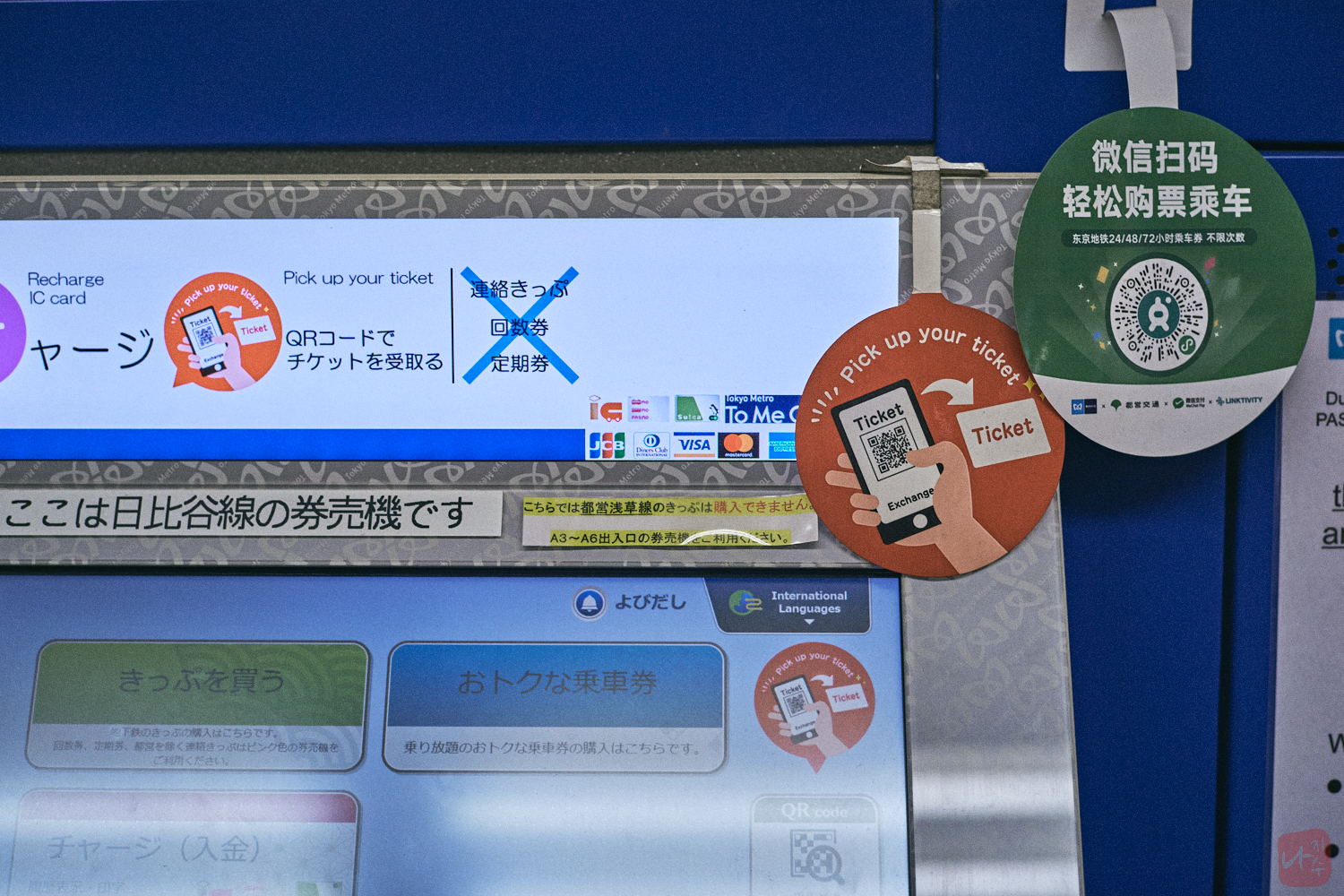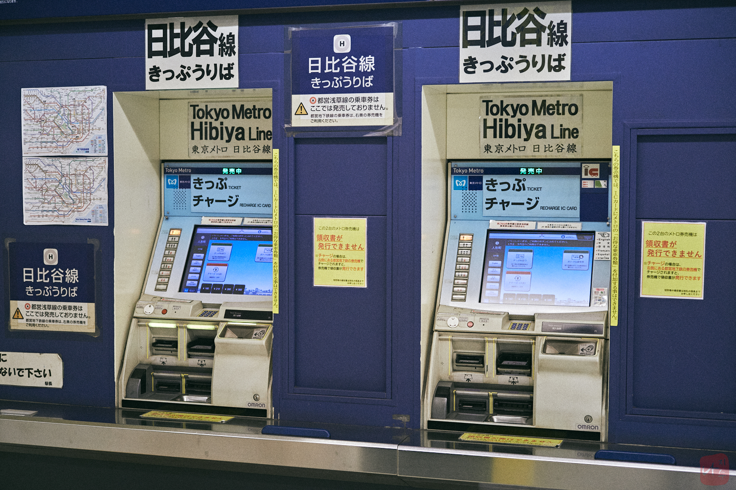 닌교초역은 도쿄메트로 관할인 히비야선 기계에서 실물 티켓 교환이 가능합니다