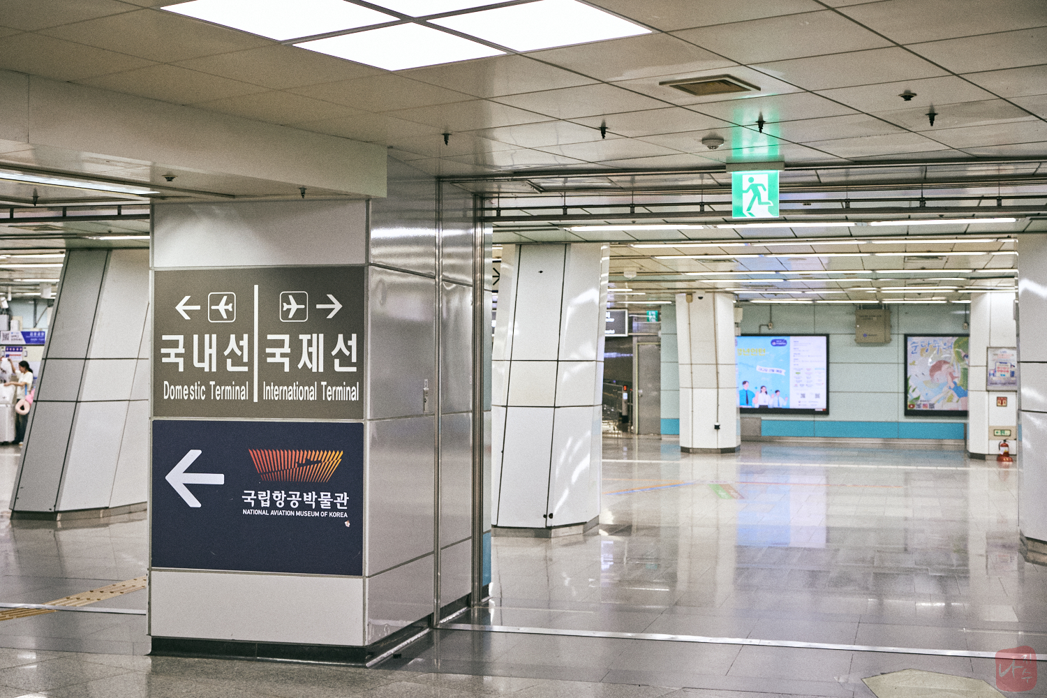 개찰구를 빠져나오자 국내선과 국제선 터미널 방향을 알리는 안내판이 보였고