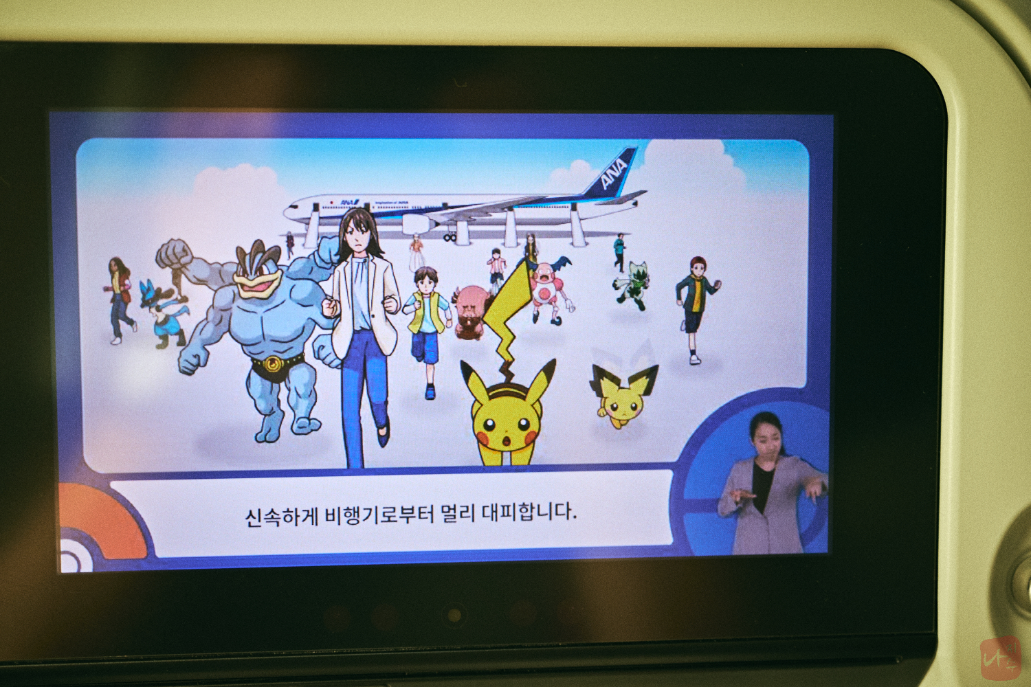 그러면서 기내에는 포켓몬스터와 협업을 한 안전 동영상이 재생되었습니다