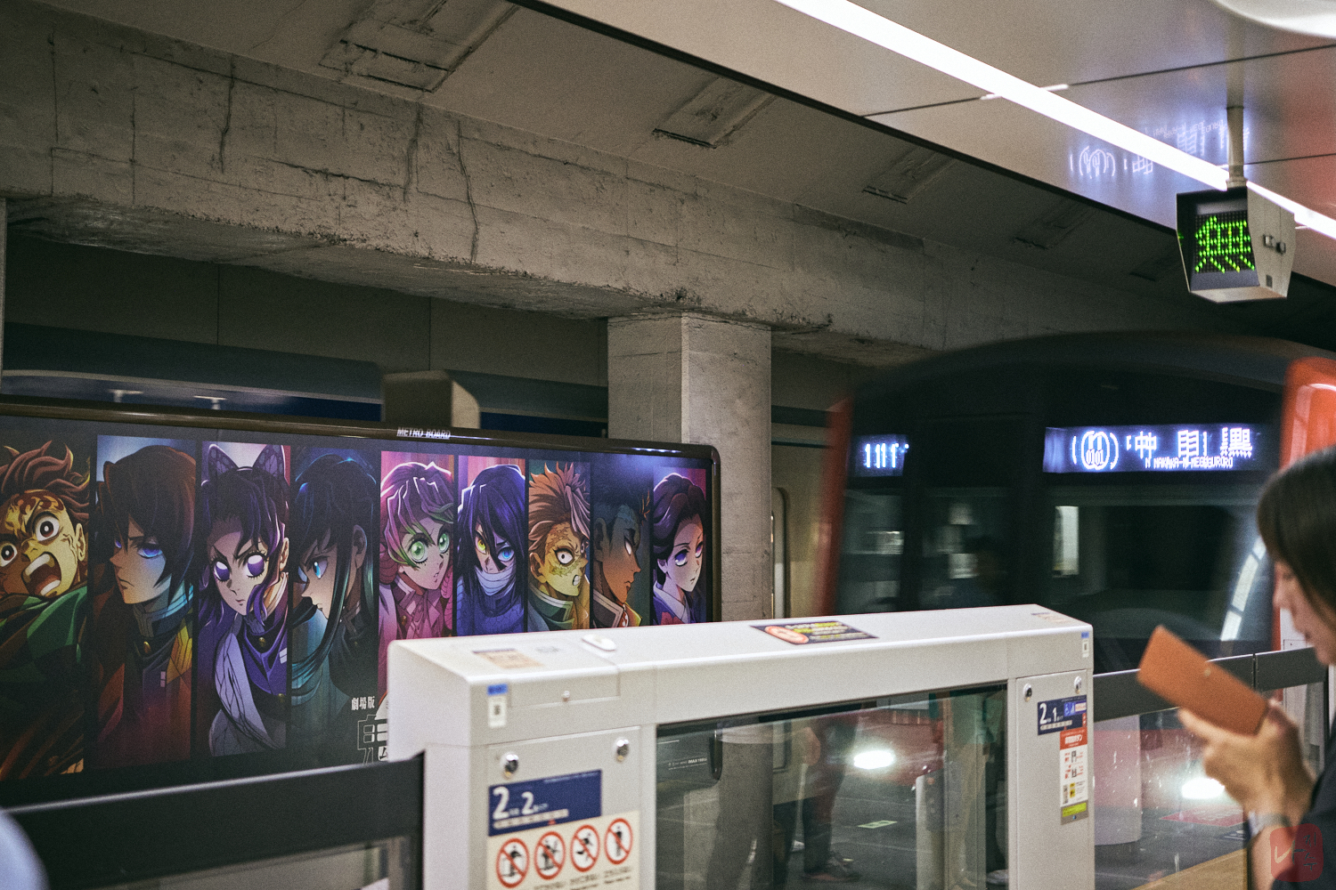 카야바초역에서 지하철을 타고 이동하려는데 광고판이 귀멸의 칼날이었습니다