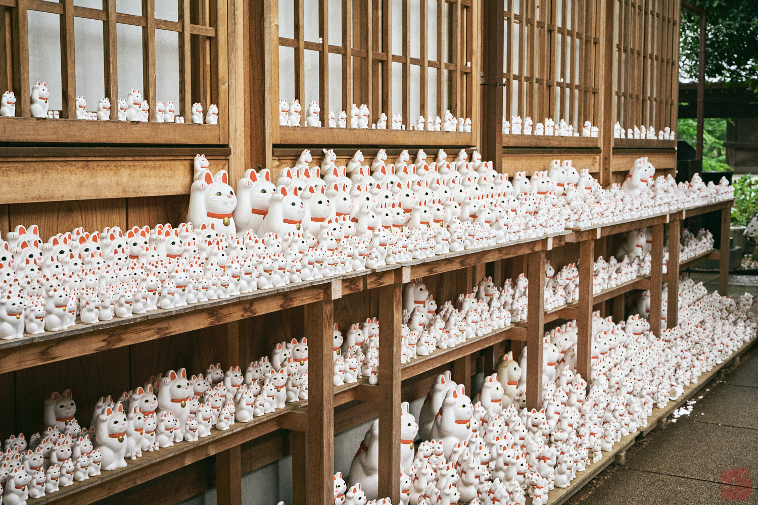그 건물 옆으로 돌자 마네키네코가 가득한 풍경이 펼쳐졌습니다
