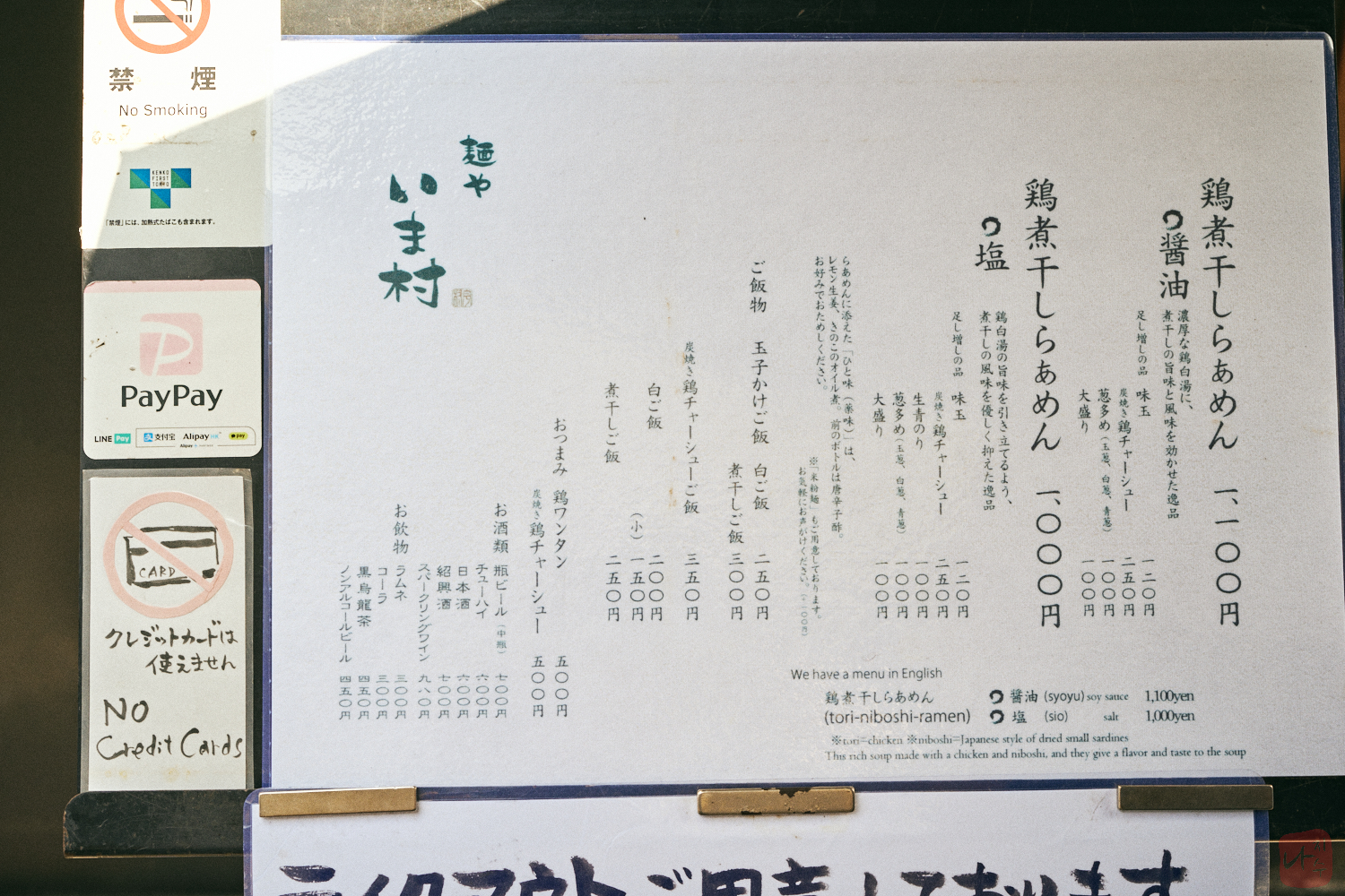멘야 이마무라는 이 토리파이탄과 니보시를 섞은 라멘을 간판 메뉴로 하는 가게이고