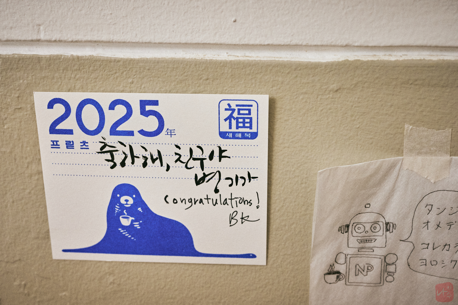 화장실에 가는 길에는 한국 프릳츠 커피의 김병기씨의 메시지가 있었습니다