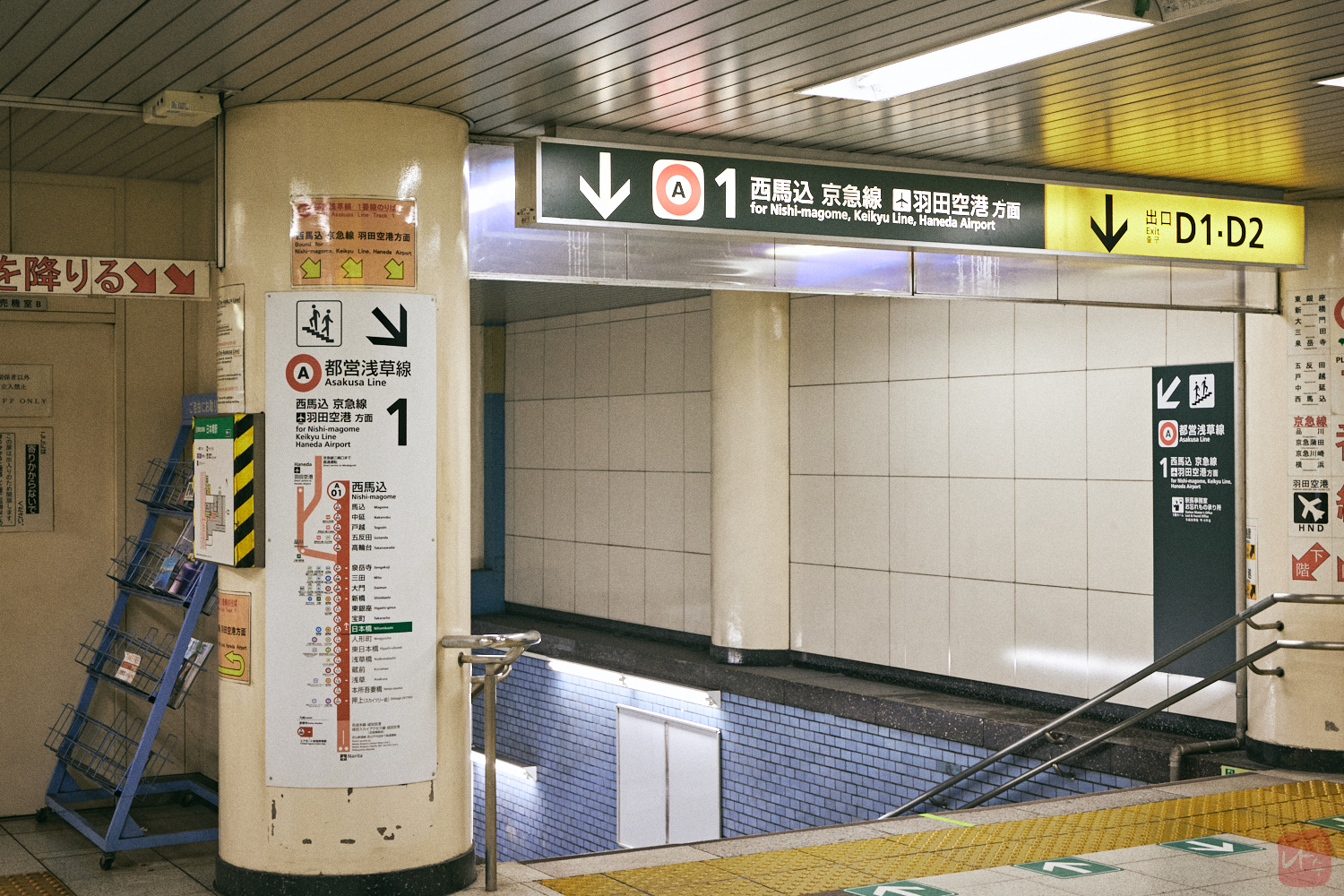 하네다 공항으로 가기 위해 토에이 아사쿠사선 승강장에서 전철을 탔습니다