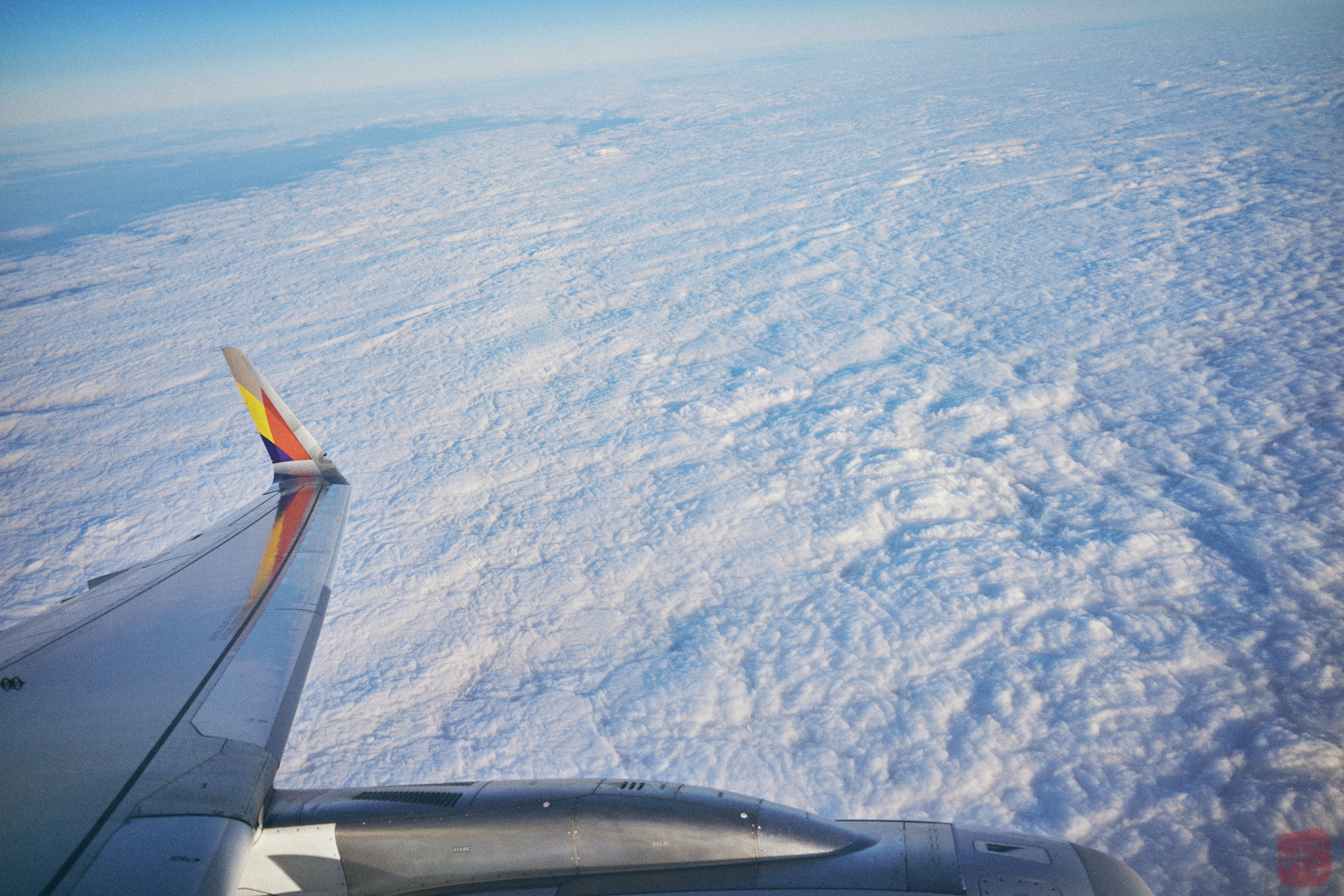 이륙 후 고도를 높이자 아래에 깔린 구름이 깔리게 되었는데