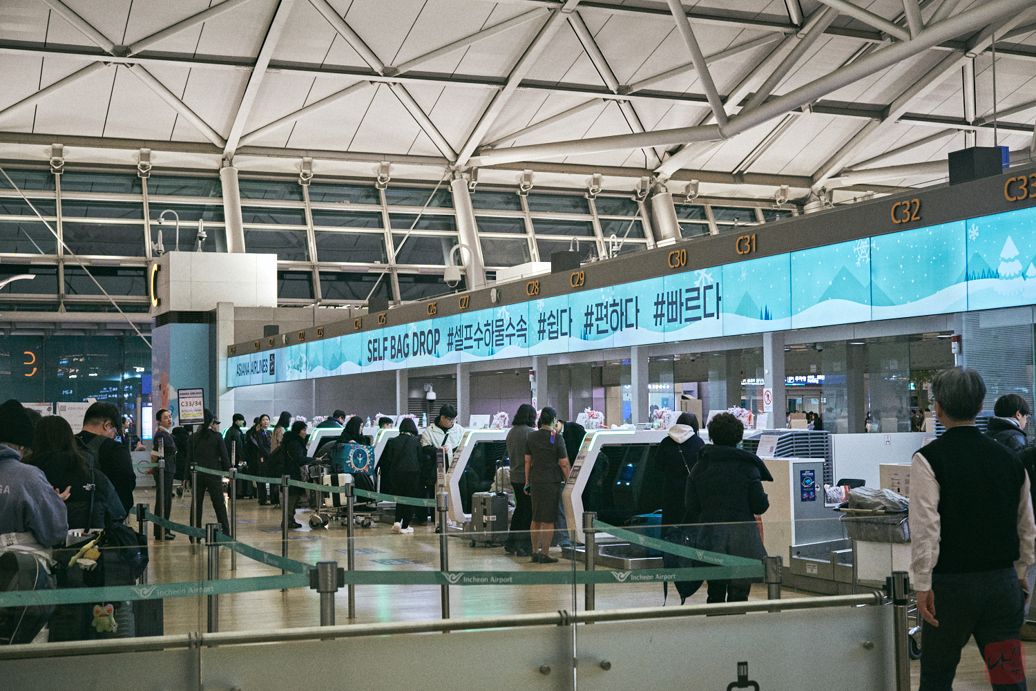 탑승수속을 하고 위탁 수하물을 맡기는데 줄을 오래 서기는 했지만