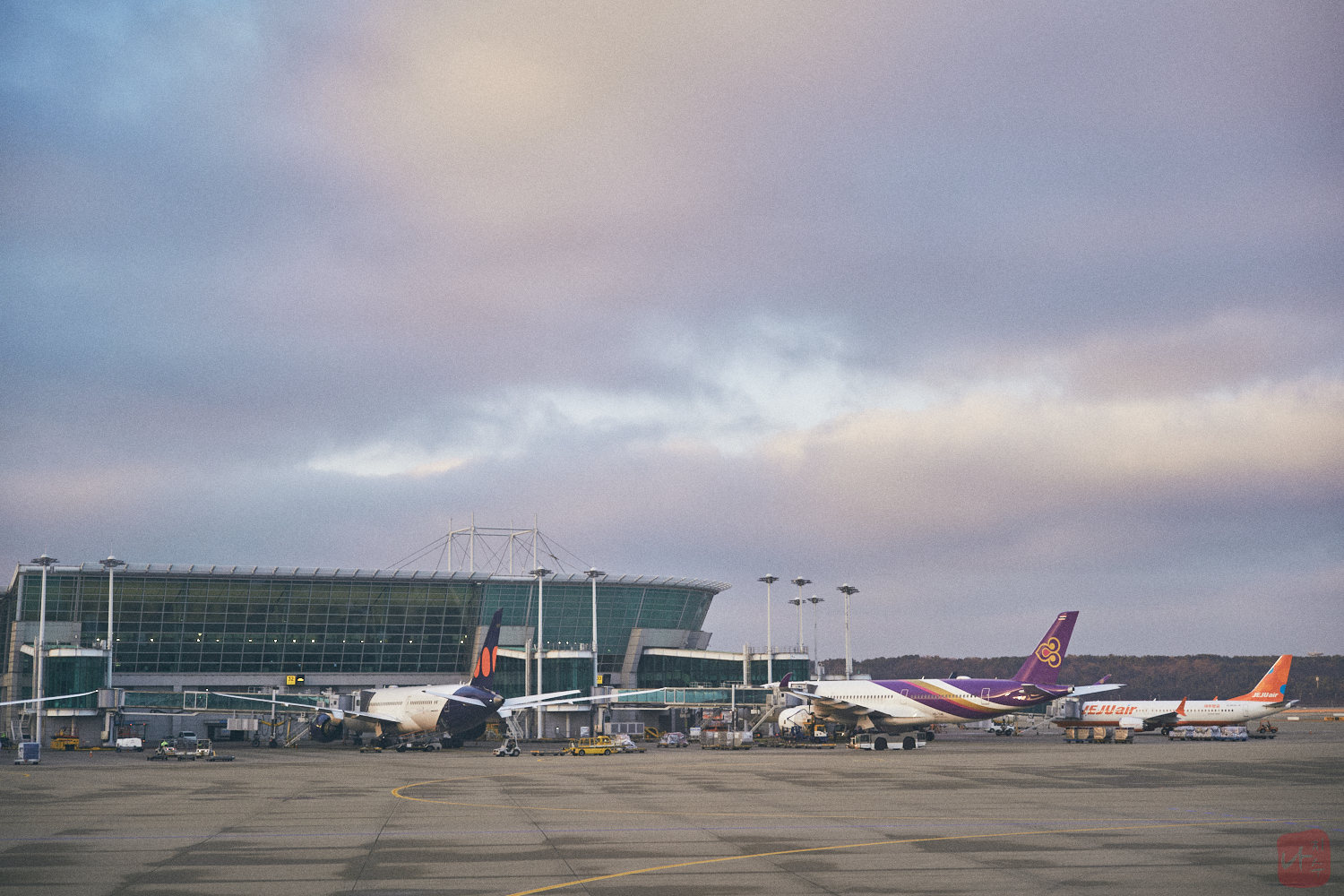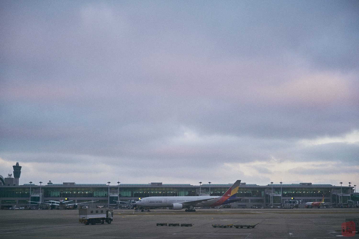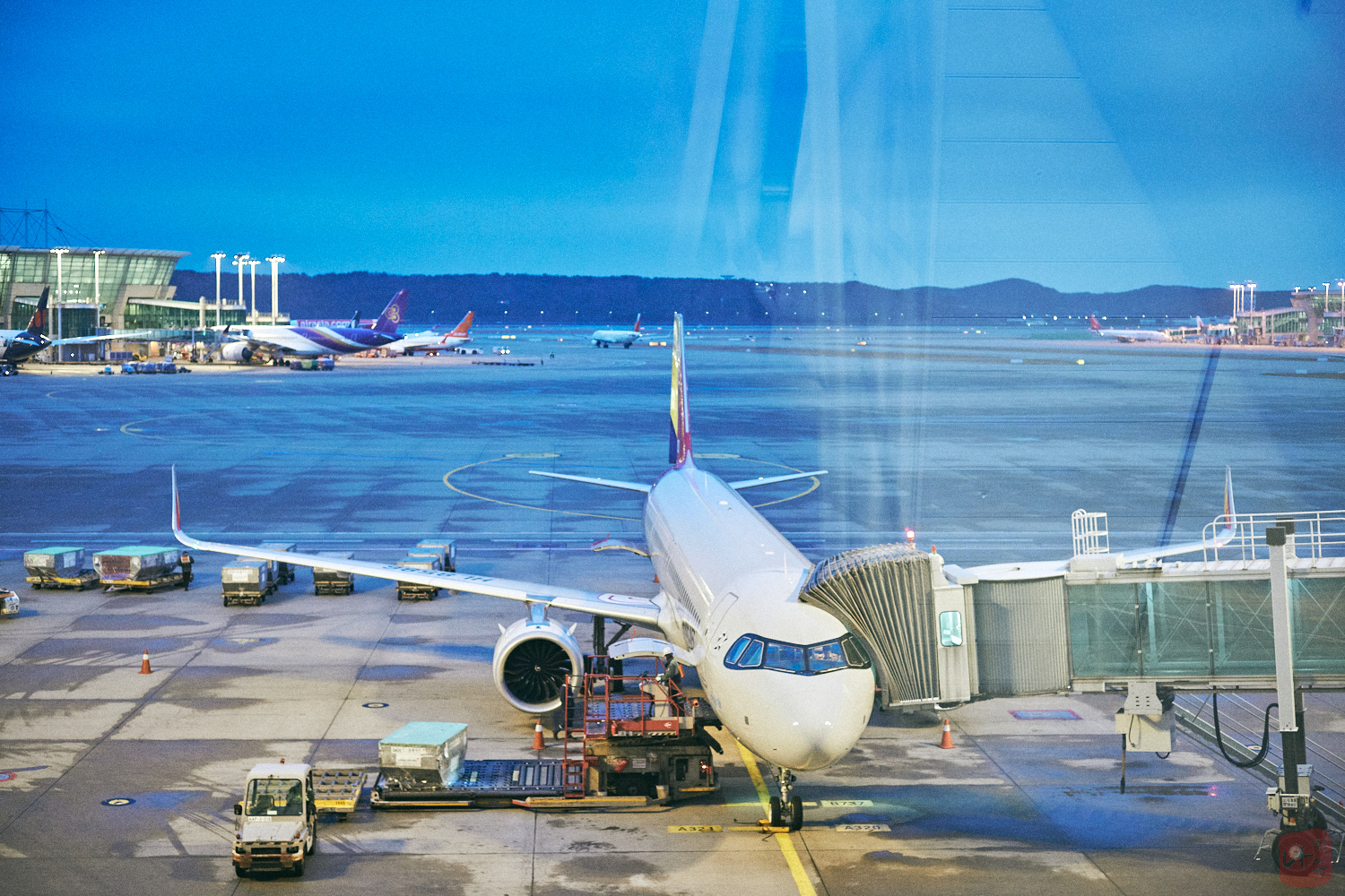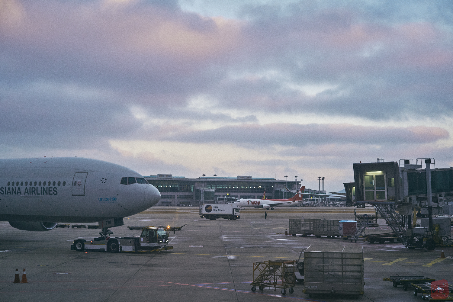 지상조업을 하고 있는 뒷편으로 조금씩 하늘이 밝아지고 있었습니다